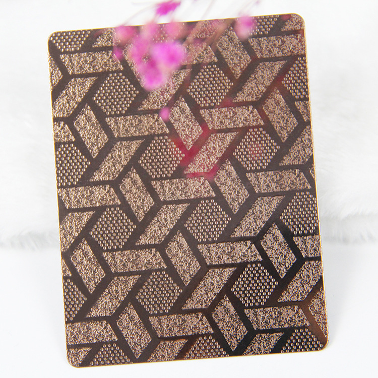 首先關于不銹鋼無指紋花紋板選用優質不銹鋼板,經過剪、壓、折彎、成型、焊接、過油、拉砂等數十道工藝加工而成,最后在表面進行無指紋處理。彩色膜層不會剝離,用無塵布擦拭可完全去除污漬,還可以在指紋接觸的幾秒過后漸漸消失,讓客戶能夠全方面的體驗的觀看,把花紋板的優點更多地呈現在客戶眼前。在另一個程度上體現出了在生活中實用且方便保養,大大的的減少了材料的成本。